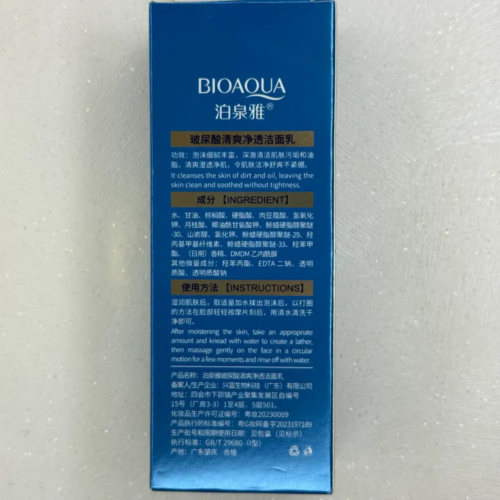 این محصول از برند معتبر بیواکوا و ساخت کشور چین است. فرمول آن شامل هیالورونیک اسید و عصاره‌های گیاهی می‌باشد که علاوه بر پاکسازی، به تغذیه و بازسازی پوست کمک می‌کند. هیالورونیک اسید آب را در پوست نگه می‌دارد و پوست را نرم، شاداب و انعطاف‌پذیر نگه می‌دارد.